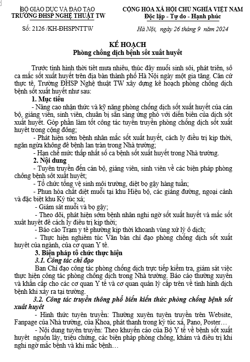 Kế hoạch số: 2126/KH-ĐHSPNT Kế hoạch Phòng chống sốt xuất huyết
