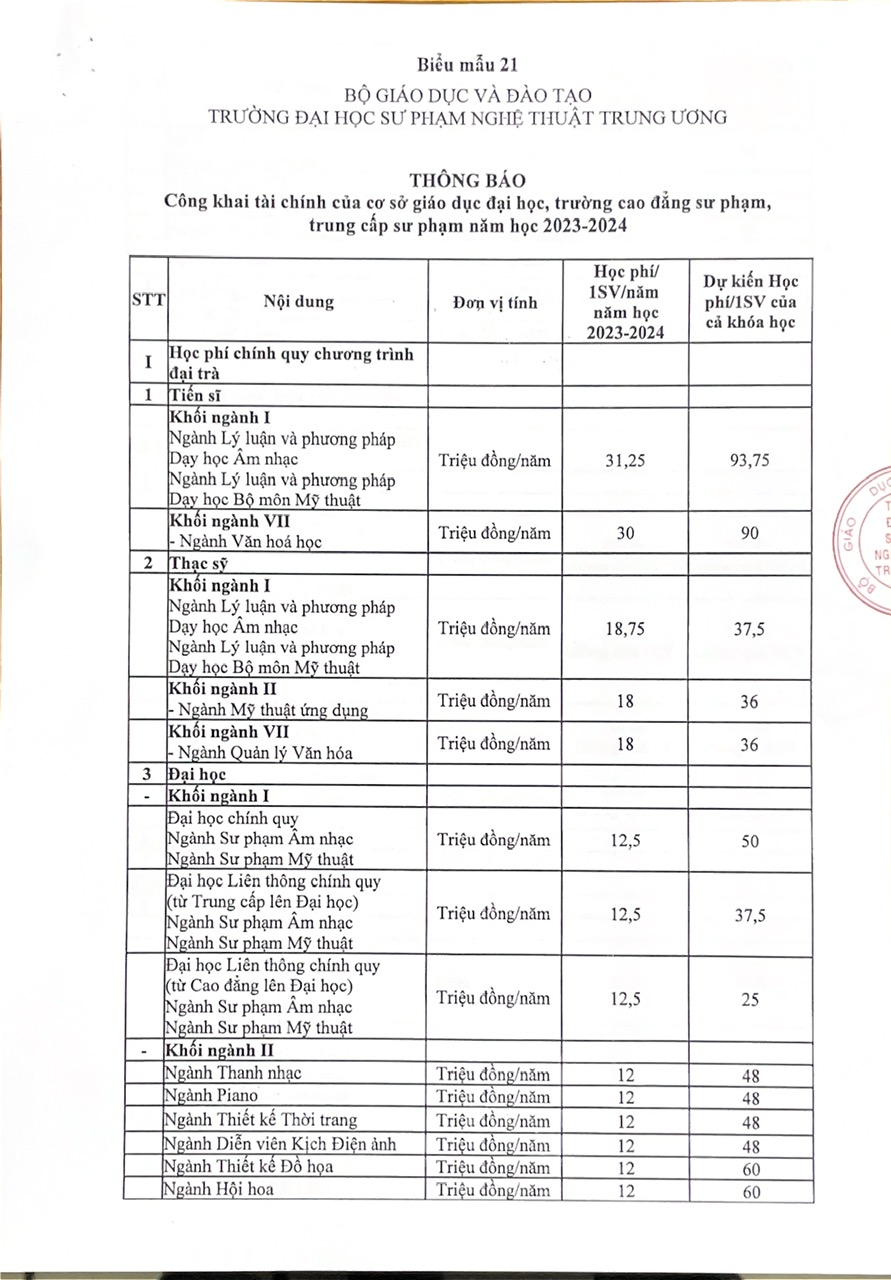 THÔNG BÁO Công khai tài chính của cơ sở giáo dục đại học, trường cao đẳng sư phạm, trung cấp sư phạm năm học 2023-2024