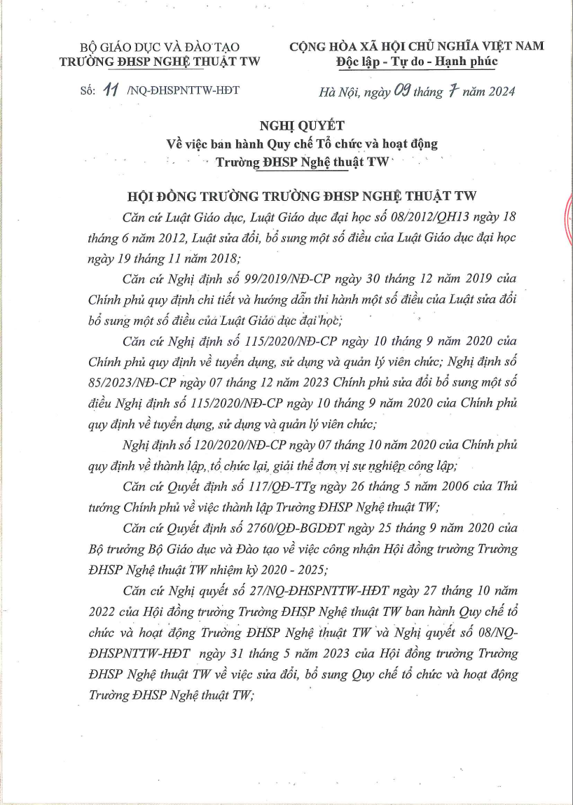 Ngày ban hành: 30/07/2024 Cơ quan ban hành: Trường ĐHSP Nghệ thuật TW